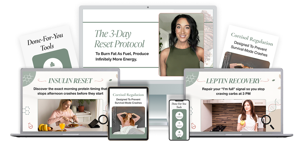 This isn’t another “eat less, move more” plan. It’s clinician-designed, based on hormone signaling (insulin, leptin, cortisol), and structured for women with real-world schedules. Instead of blaming you when life gets messy, it gives you flexible systems that adapt.